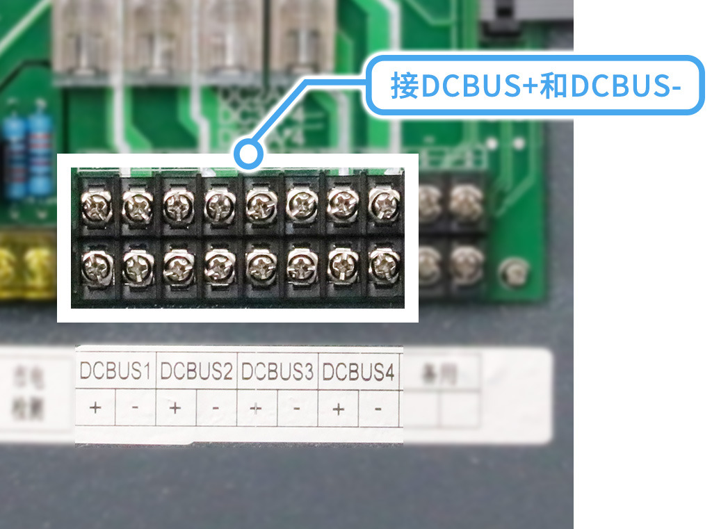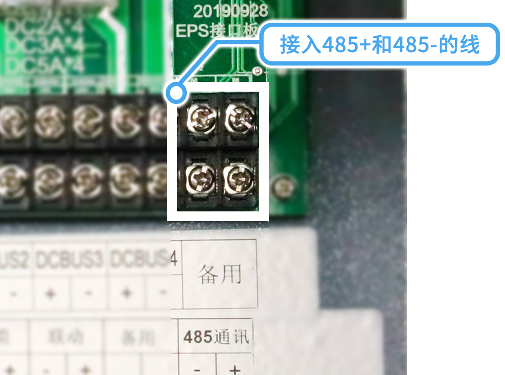 通信部分的主機(jī)通信:在以下2個(gè)端口接入485+(正)和485-(負(fù))的線,注意不要接反;