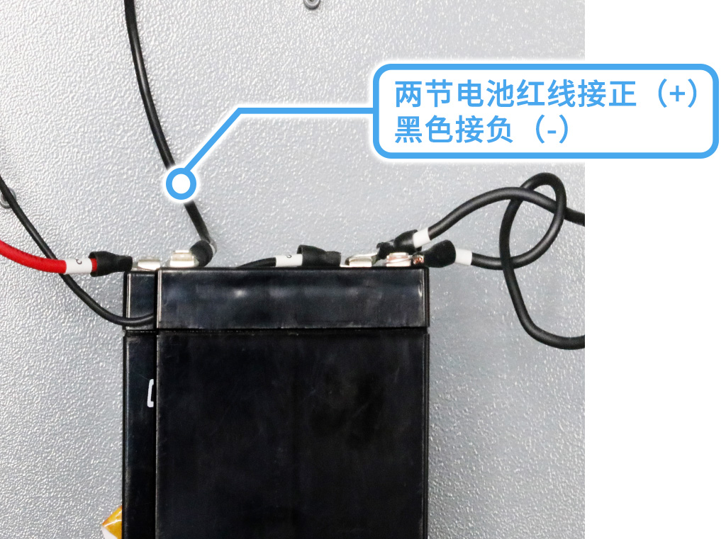 備電部分:使用兩節(jié)電池,紅線接正(+),黑色接負(fù)(-),中間有一條連接線,一條細(xì)的檢測線,線路接好后,可以上電測試;